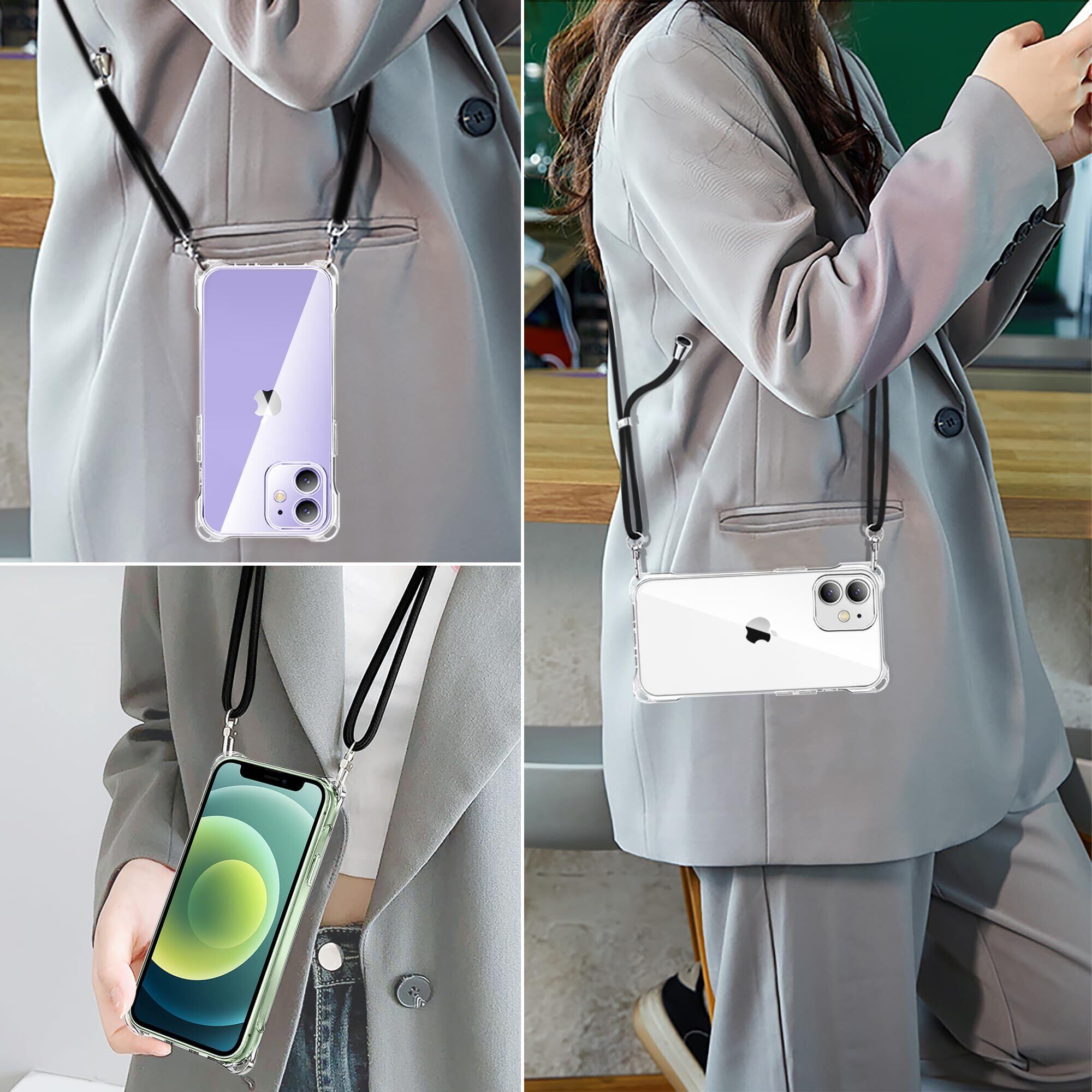 iPhone 11 ケース クリア ネック ショルダー ストラップ付き iPhone 11 スマホケース iPhone11 カバー 耐衝撃 薄型 軽量 TPUスマホ シリコン カバー 紐付き 斜めがけ 織りストラップ付き 肩掛け 縦/横 2WAY 調節可能なショルダー クロスボディ 多目的キャリー ファッションデザイン (透明)
