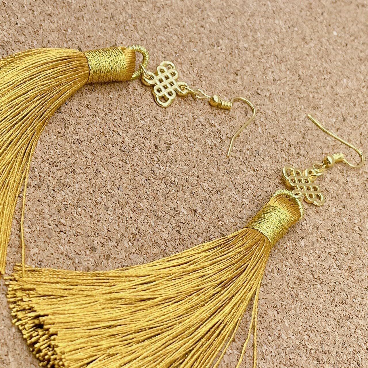タッセルピアス フリンジ 揺れる 金 中華 中華街 中国結 中華ピアス チャイナピアス タッセル ピアス チャイナコーデ