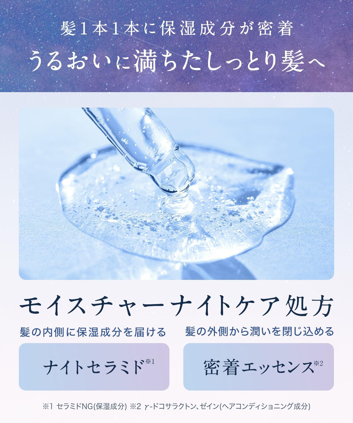 【翌朝に感動】夜の濃密集中補修で、翌朝扱いやすいうるツヤ髪に