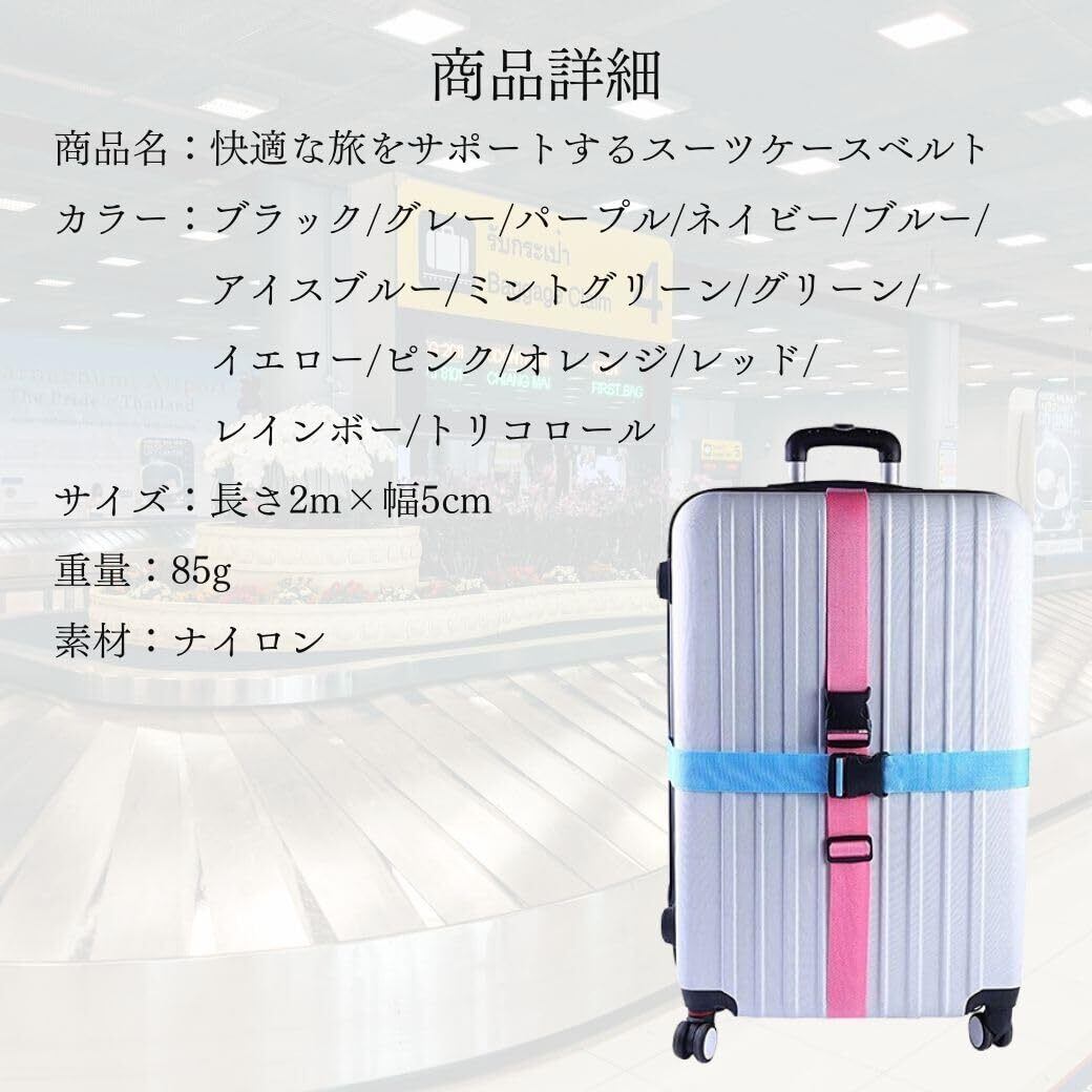 カラフルな組み合わせでアレンジも可能なので、ターンテーブルで荷物の目印にもなる便利なスーツケースベルトです