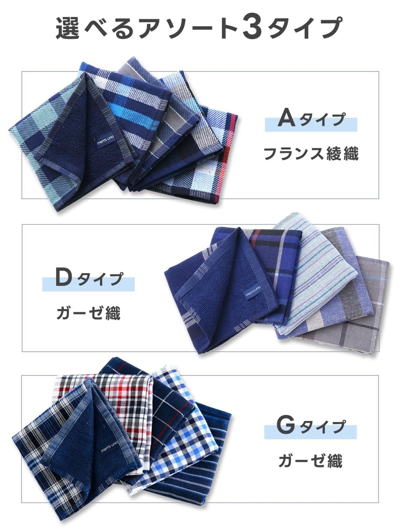 ビジネスマン サポート ハンカチ ガーゼ織 フランス綾織 パイル織 メンズハンカチ 5枚セット 25cm 綿100%