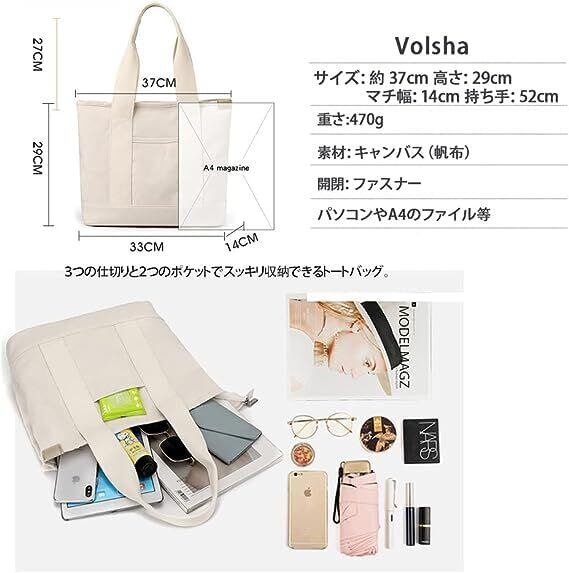 Volsha トートバック キャンバス A4 大容量 トート キャンバス ショルダーバッグ 無地 キャンパストート帆布 男女兼用 通勤通学