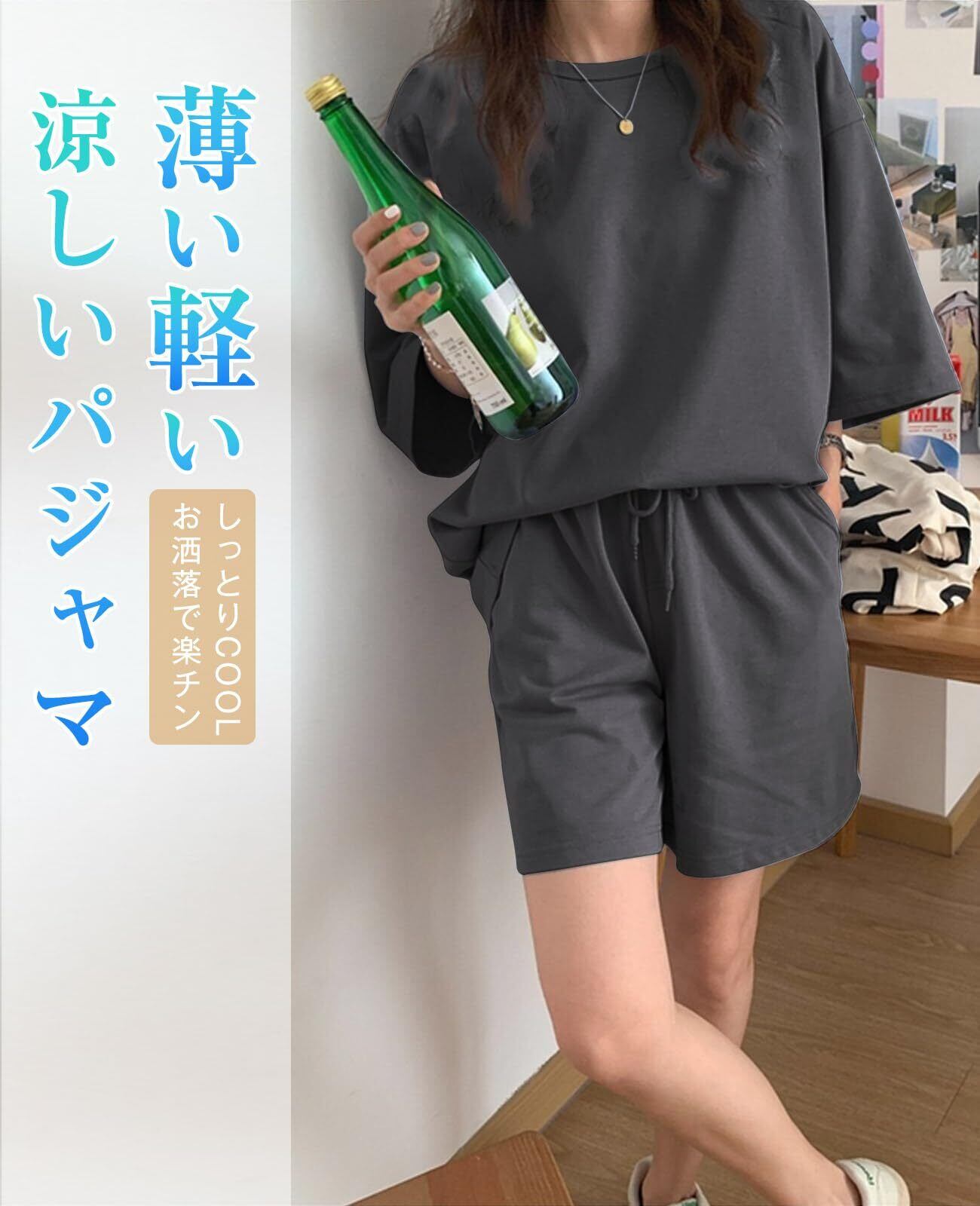 ヒルトップクラウド パジャマ レディース 夏 半袖 上下セット ルームウェア 部屋着 寝間着 丸首 薄手 涼しい 通気性 ゆったり 肌に優しい 着瘦せ効果 可愛い おしやれ