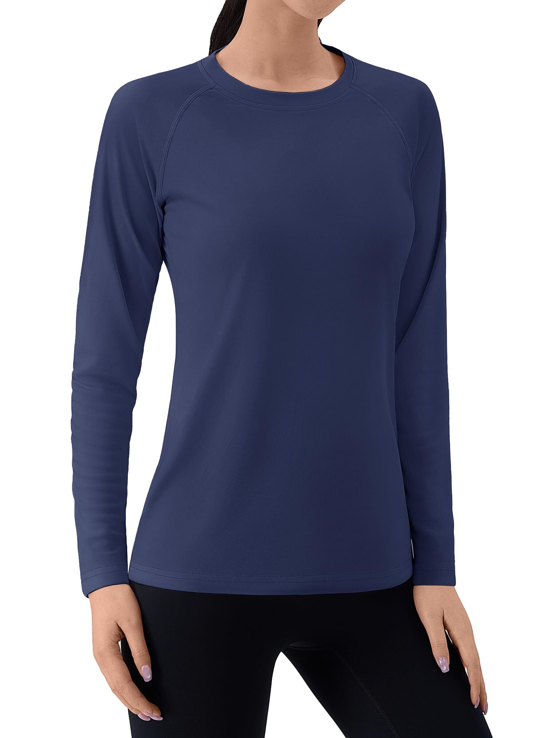 KEFITEVD 長袖tシャツ レディース スポーツ 吸汗速乾 ラッシュガード ランニング UVカット トップス 無地 インナー ストレッチ クルーネック 登山 ロンt 春秋夏