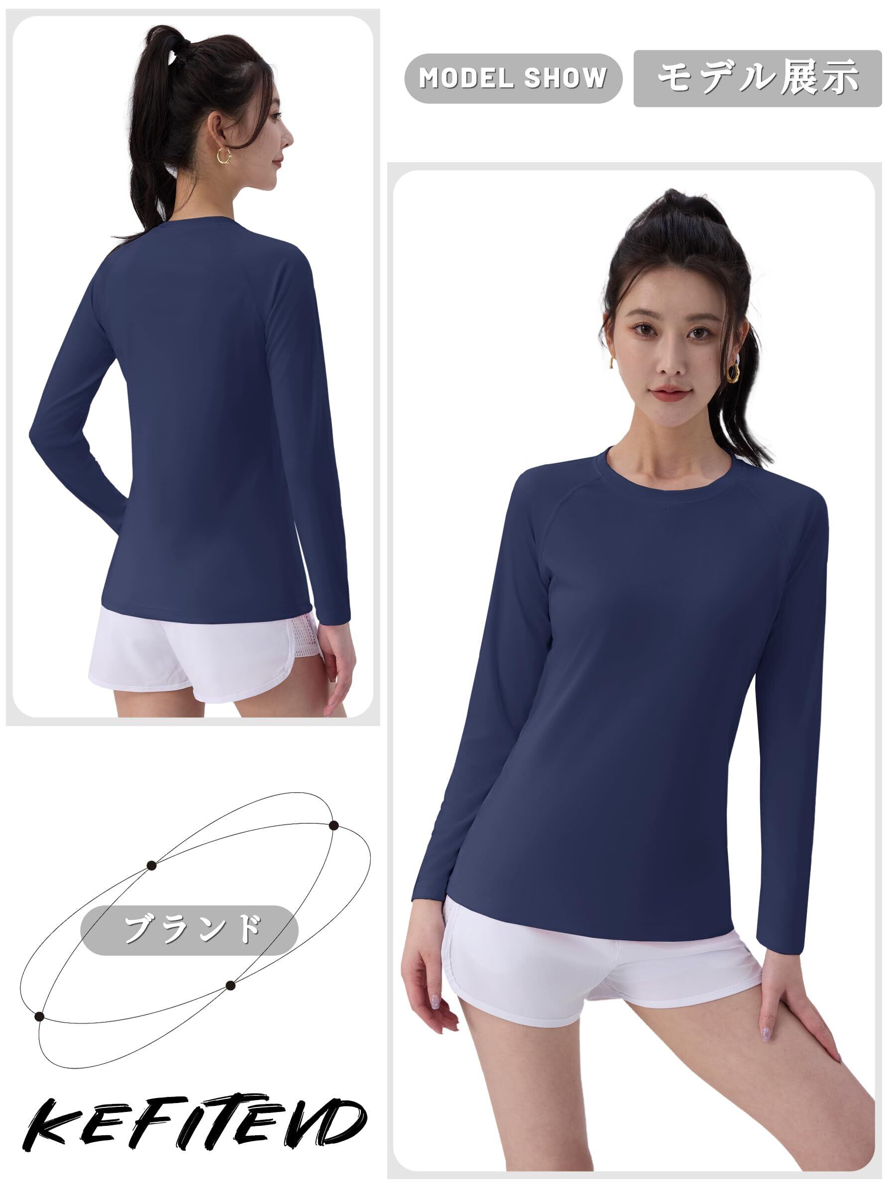 【数量限定】KEFITEVD 長袖tシャツ レディース スポーツ 吸汗速乾 ラッシュガード ランニング UVカット トップス 無地 インナー ストレッチ クルーネック 登山 ロンt 春秋夏