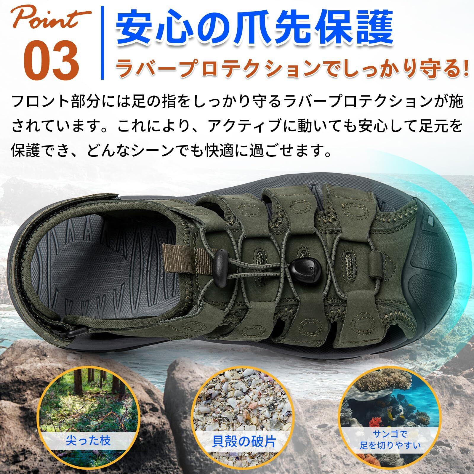 【つま先保護設計】アウトソールの素材がつま先部分にも覆われて保護性や耐久性もアップする。スポーツ、登山やハイキングなどのアウトドアアクティブに足先をしっかり守る。アウトドア、運動、普段着に最適です。