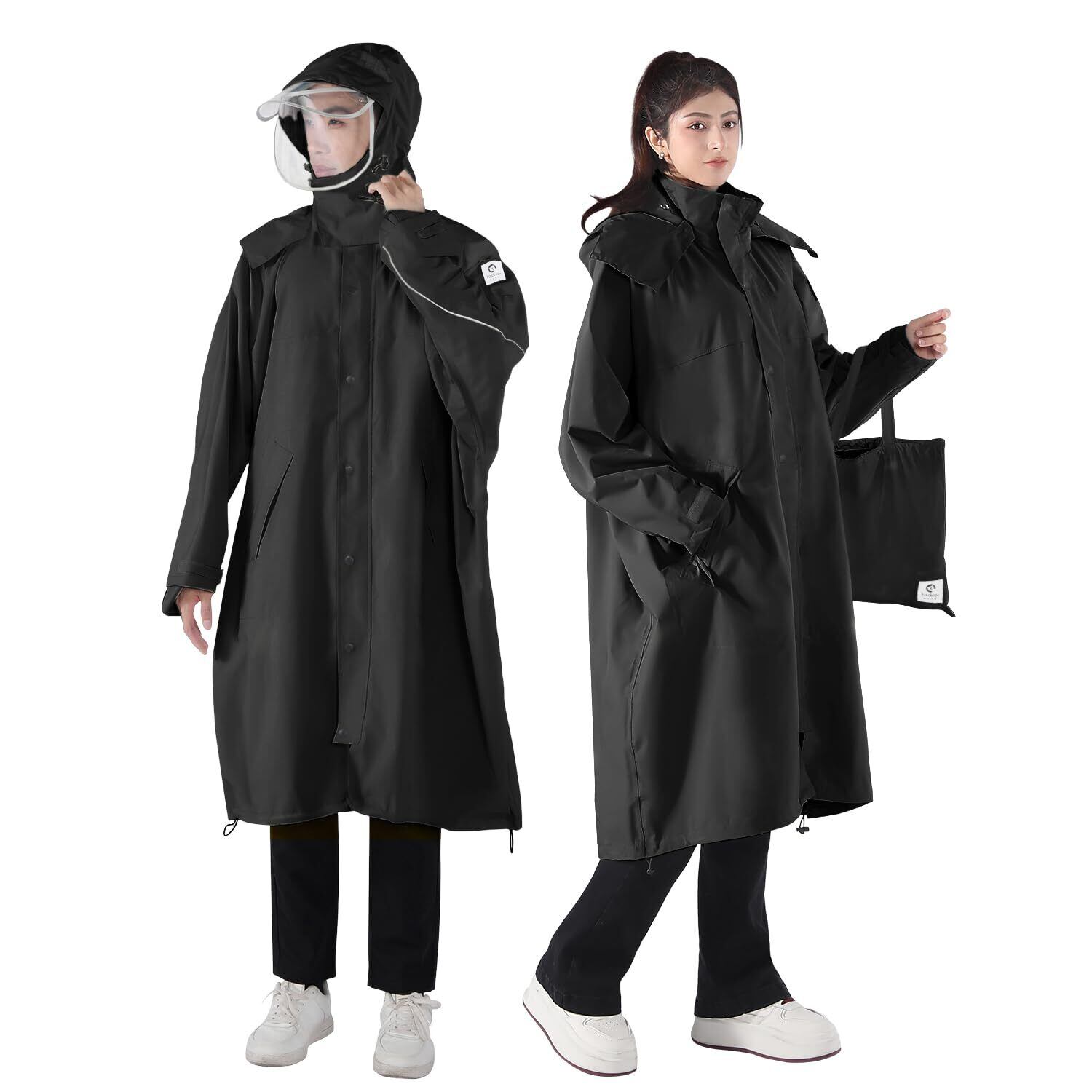 3つの特徴: 1.新型高品質春アヤニウム生地にTPUコーティングを施し、レインコートの快適性、通気性、そして優れた防水・防風性能を実現しています。2.レインコートの裾には実用的なデザインを取り入れ、ライディング中に裾がめくれ上がるのを防ぎ、パンツが濡れる心配を軽減します。3.着脱可能なフードと透明バイザーが顔をしっかり守り、優れた防雨性能を提供します。頭にぴったりフィットし、ヘルメットを着用していても快適に動かすことができます。