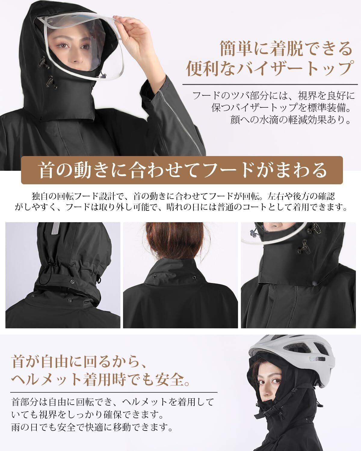 【2022最新】HINOKAZE レインコート 自転車【軽量構造×TPU高耐水仕様】 レディースレインウェア メンズカッパ レインポンチョ ロング 大人 バイクカッパ かっぱ ポンチョ リュック対応 おしゃれ 多機能 防風防水 丈夫 通勤通学 男女兼用 反射テープ