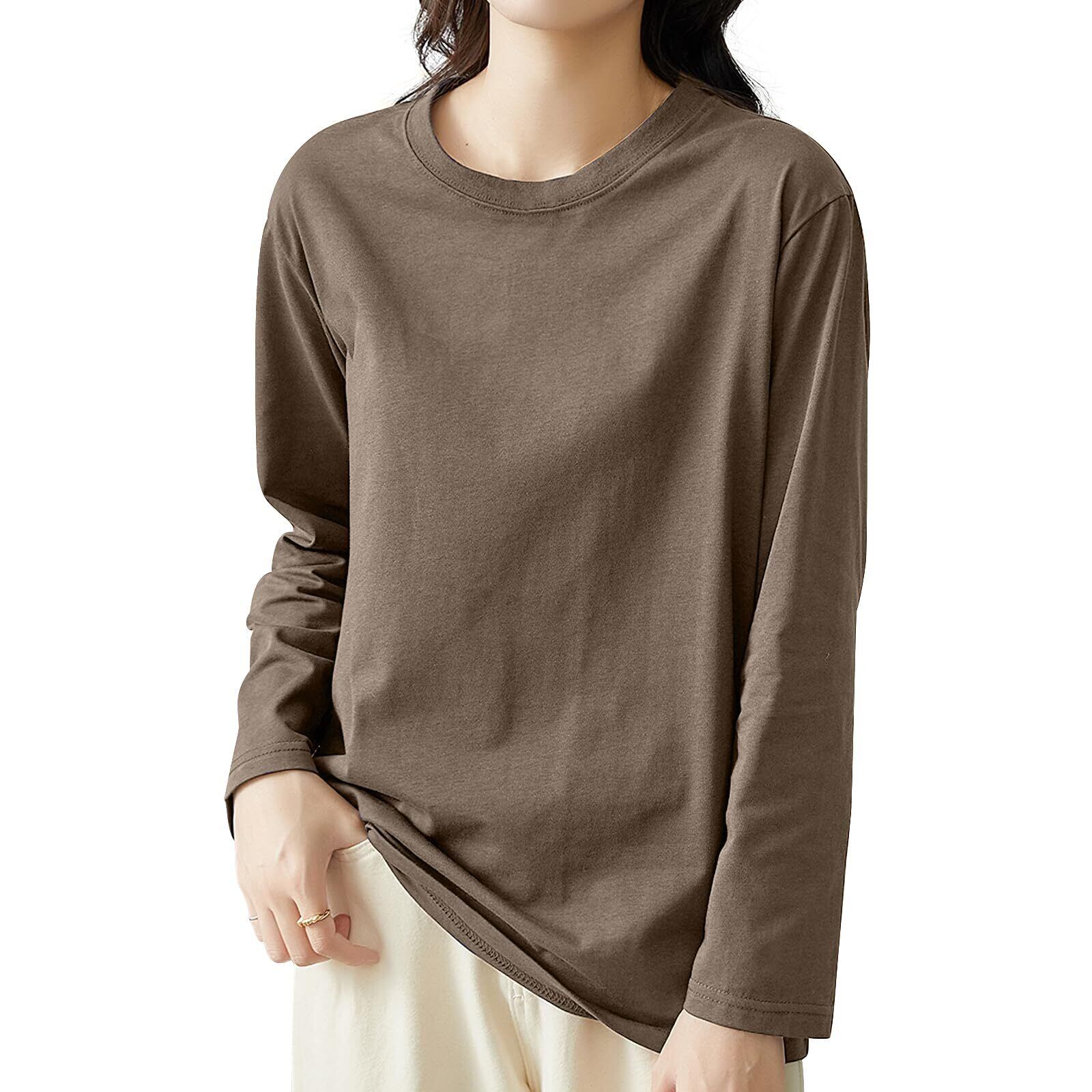 EAXGO 【綿100!当店1番人気】ロンティー レディース 長袖tシャツ トップス 【トレンドの新定義・ゆる感・小顔効果】 カットソー クルーネック ティーシャツ ロングスリーブ 無地 カジュアル ゆったり 重ね着 きれいめ オシャレ 春