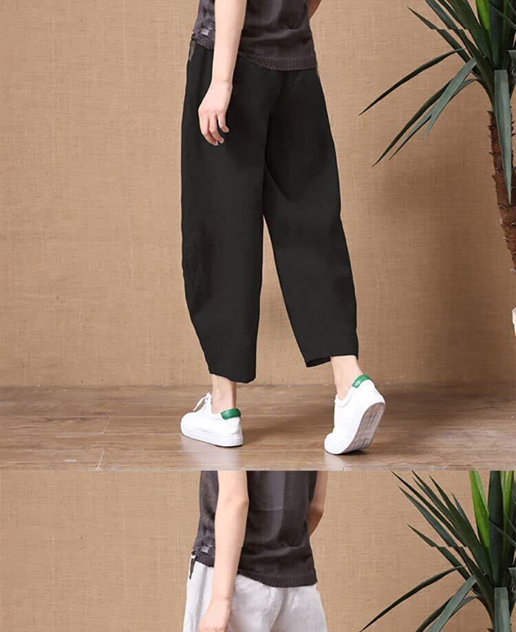 JINJUDUO レディースパンツ ルーズパンツ フラットポケット シンプル ウエストゴム 大きいサイズ 春 夏 秋 冬 レディース 快適 通気性 S-5XL ホーム パジャマ ズボン 九分丈パンツ