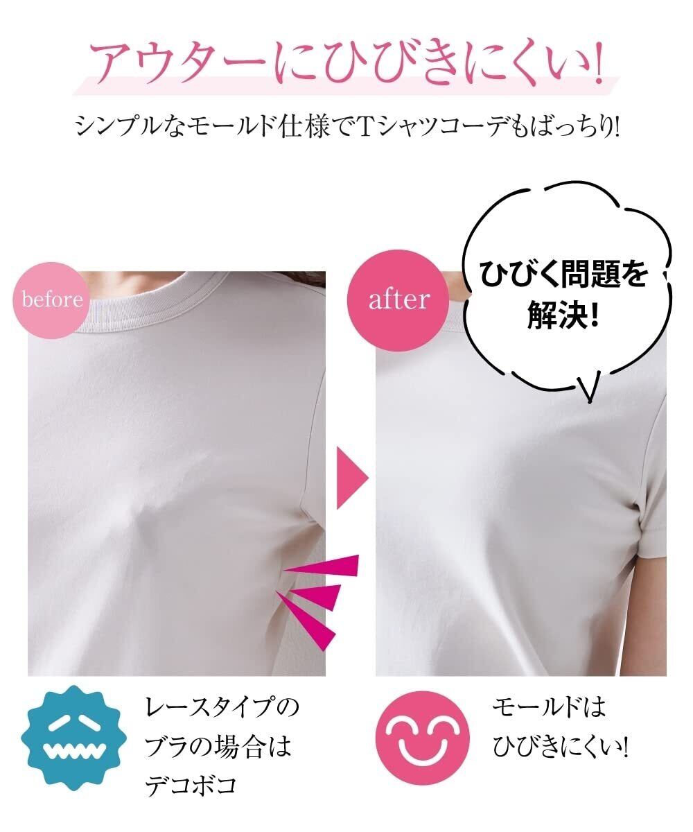 シームレスカップを使用しているため、服にラインが響きにくく、スマートな着こなしができます。