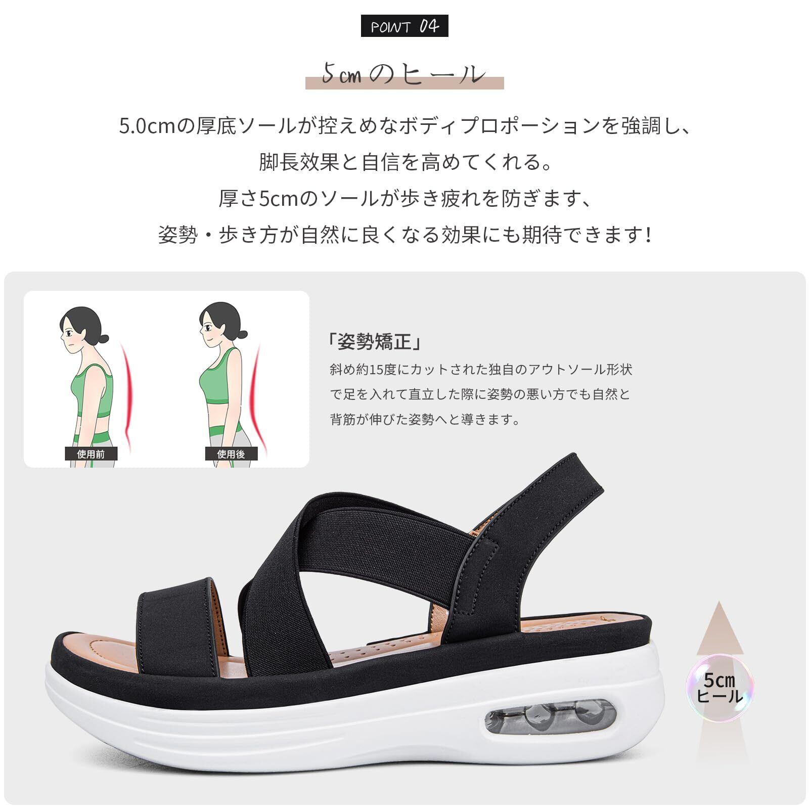 Maxome サンダル レディース 歩きやすい ゴムバンド 厚底 スポーツサンダル エアクッション クロスベルト 夏 疲れない 軽量 痛くない オフィスサンダル スリッポン ウォーキング ウェッジ 美脚 通勤 カジュアル おしゃれ