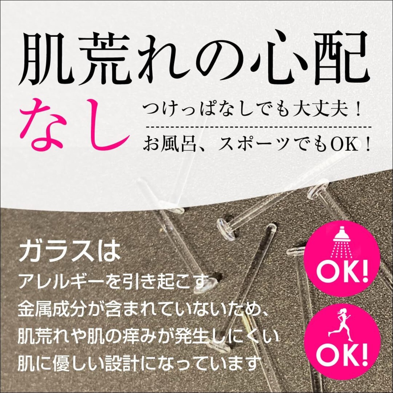 Raplu 透明ガラスピアス 毎日使いやすい つけっぱなしOK 金属アレルギー対応 職場用 4本+キャッチ8個