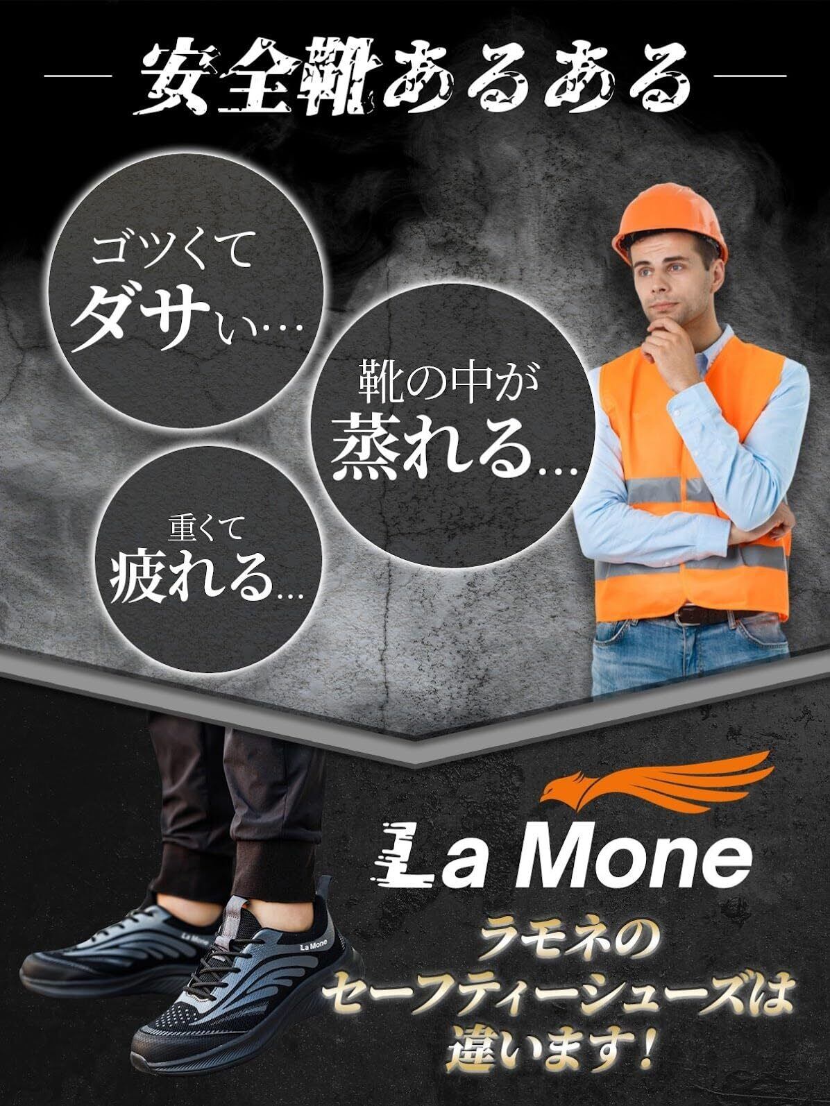 La Mone 安全靴 作業靴 【こだわりの履き心地】 セーフティーシューズ 軽量 通気性 クッション性 鋼鉄先芯 踏み抜き防止 メンズ BREEZE