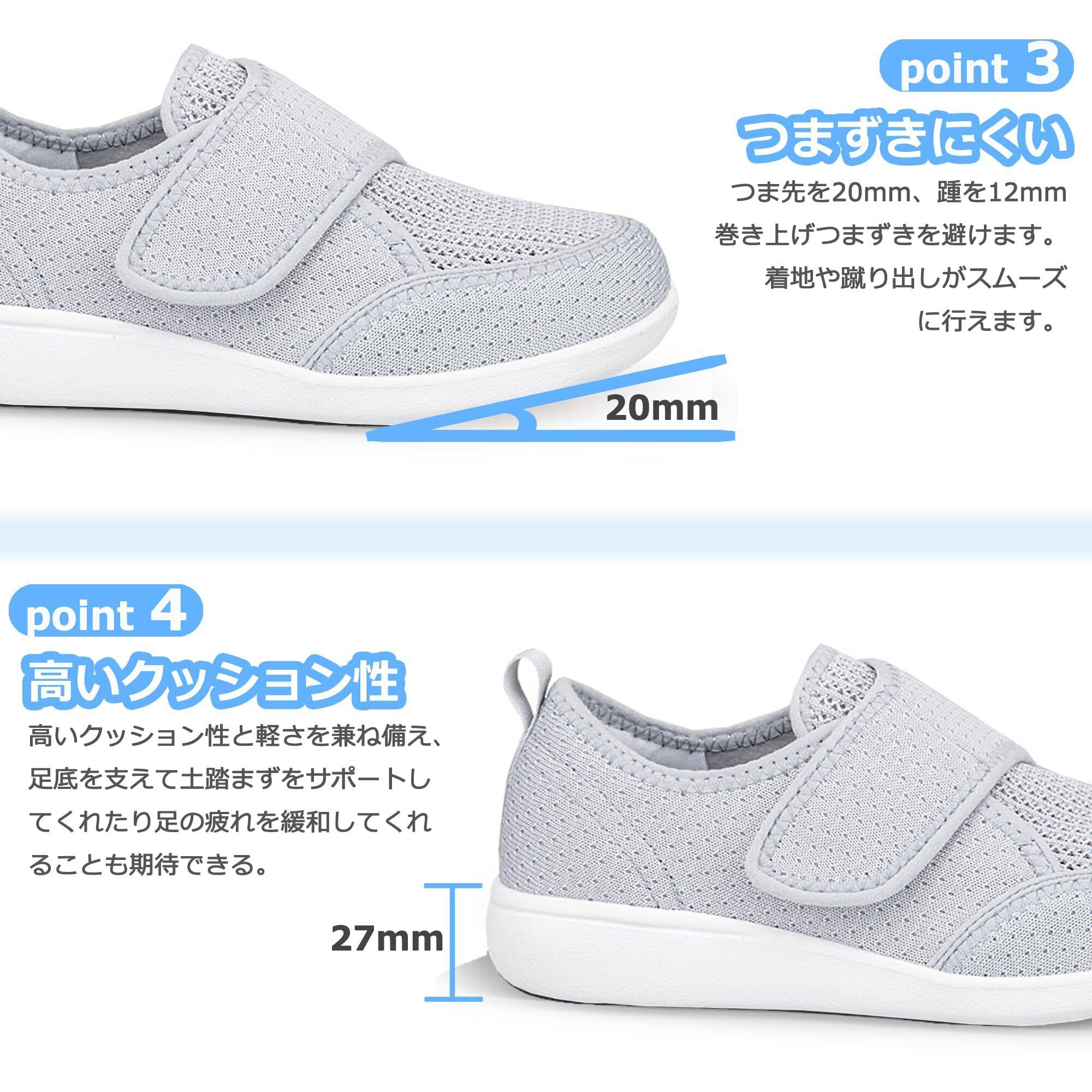 JFbaha 介護シューズ レディース 入院シューズ 介護 靴 リハビリシューズ 女性用 介護用靴 スリッポン 介護 上履き 4E 幅広甲高スニーカー マジックテープ 老人靴 滑り止め 転倒予防 通気性 軽量