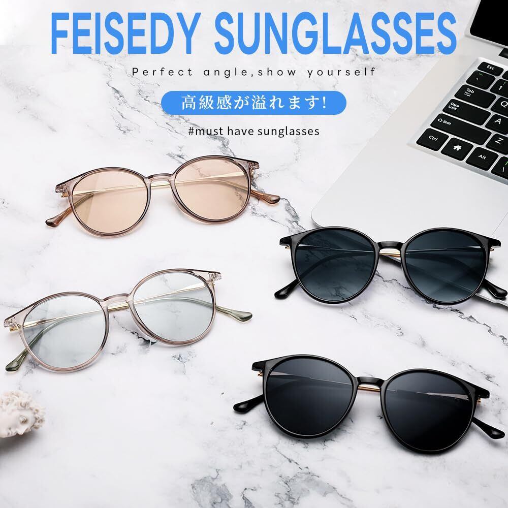 FEISEDY サングラス UV400 紫外線カット 伊達めがね 丸型 小さめ おしゃれ 軽量 ファッション 通勤 旅行 運転用 メンズ レディース ボストン B1157
