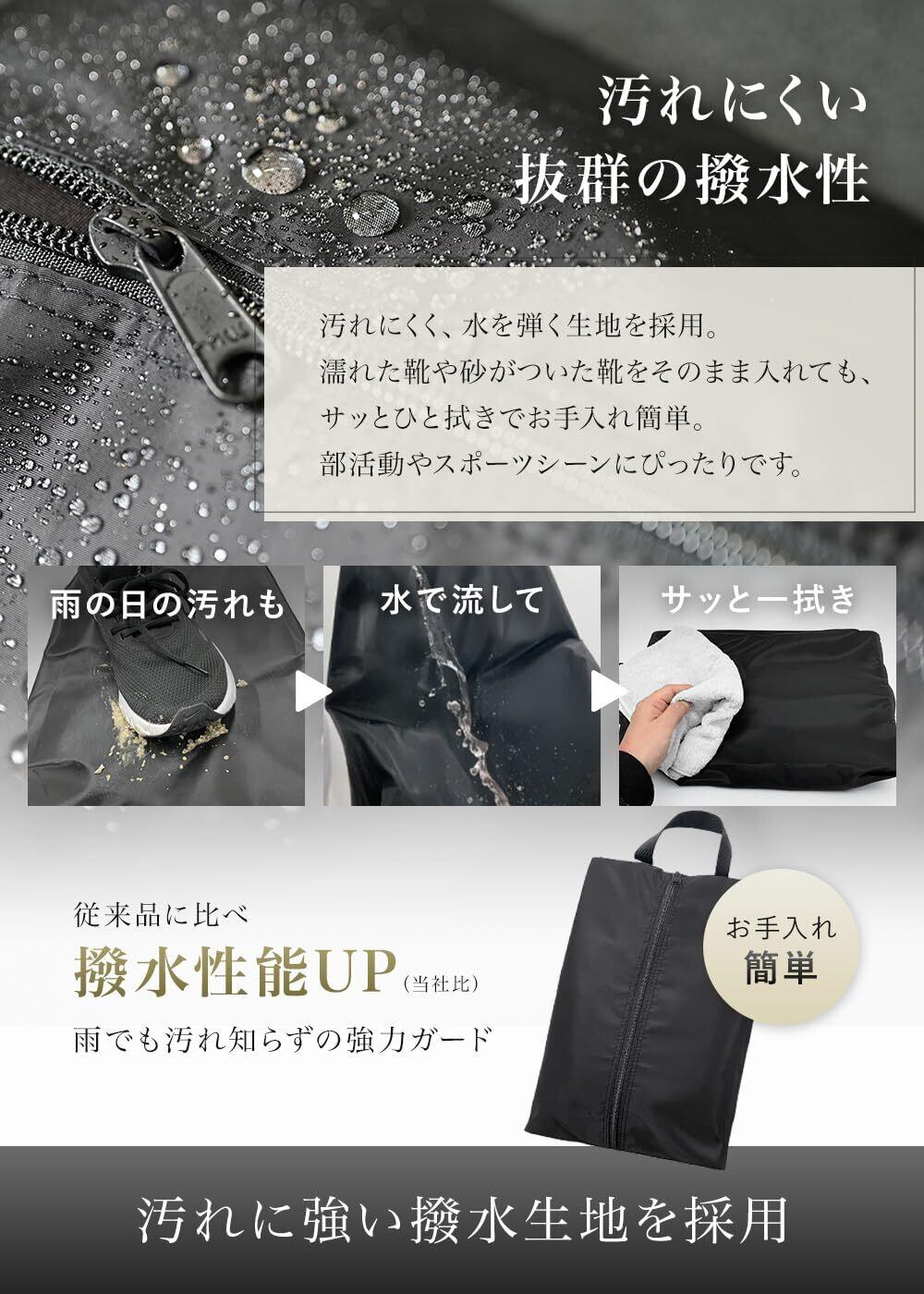 【抜群の撥水効果】汚れにくく、水を弾く生地を使用。濡れた靴や、砂がついた靴をそのまま入れても、綺麗に使用することが出来ます。