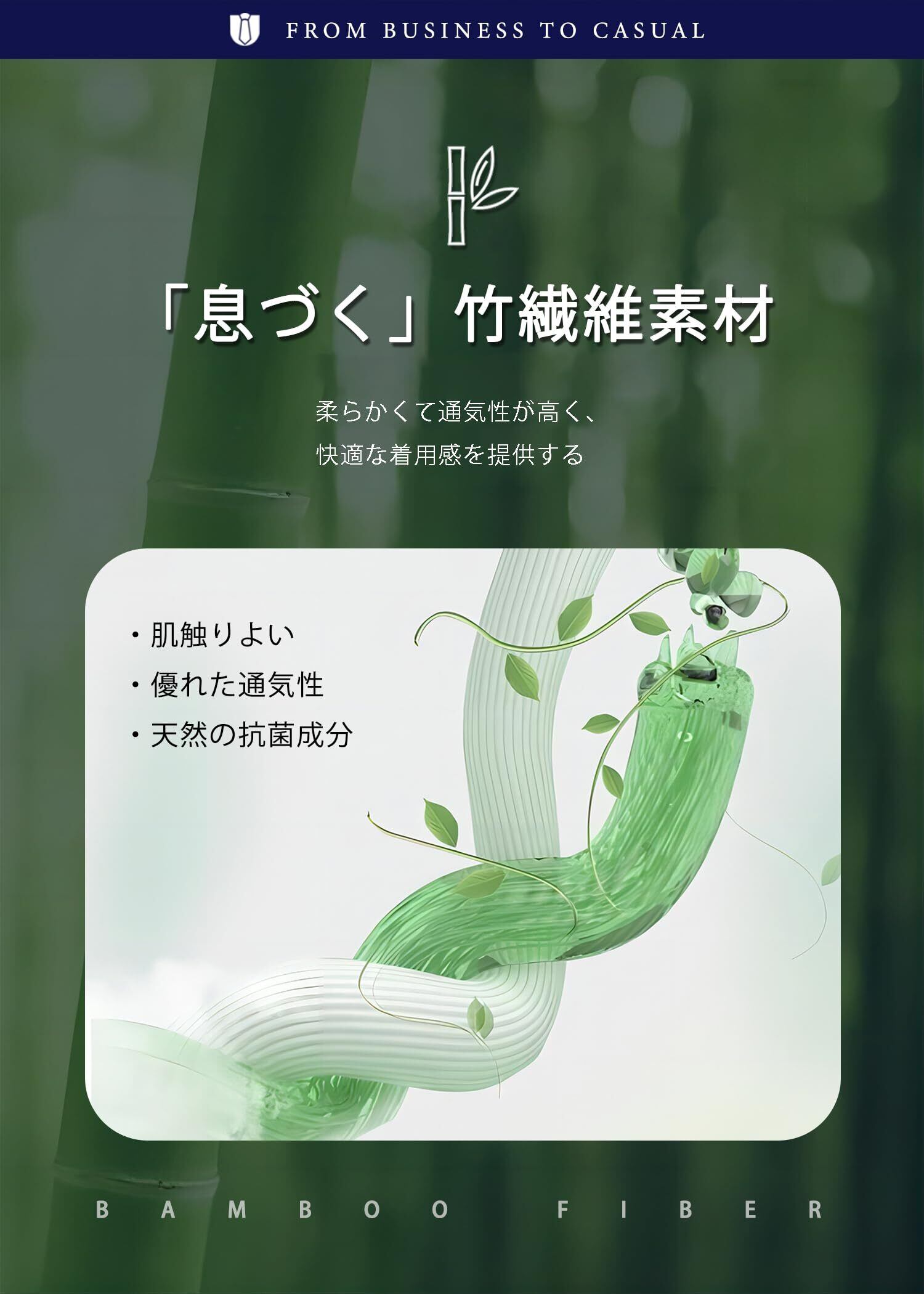「接触冷感」新感覚の素材体験をあなたに。竹繊維素材がもたらす優れた"接触冷感"の特性を持ち、それは、肌に触れた一瞬で肌の熱を吸収し、快適な冷涼感をもたらす独特の体感を提供します。炎炎夏日でも、常に軽快で、さっぱりとした状態に保つことができます。