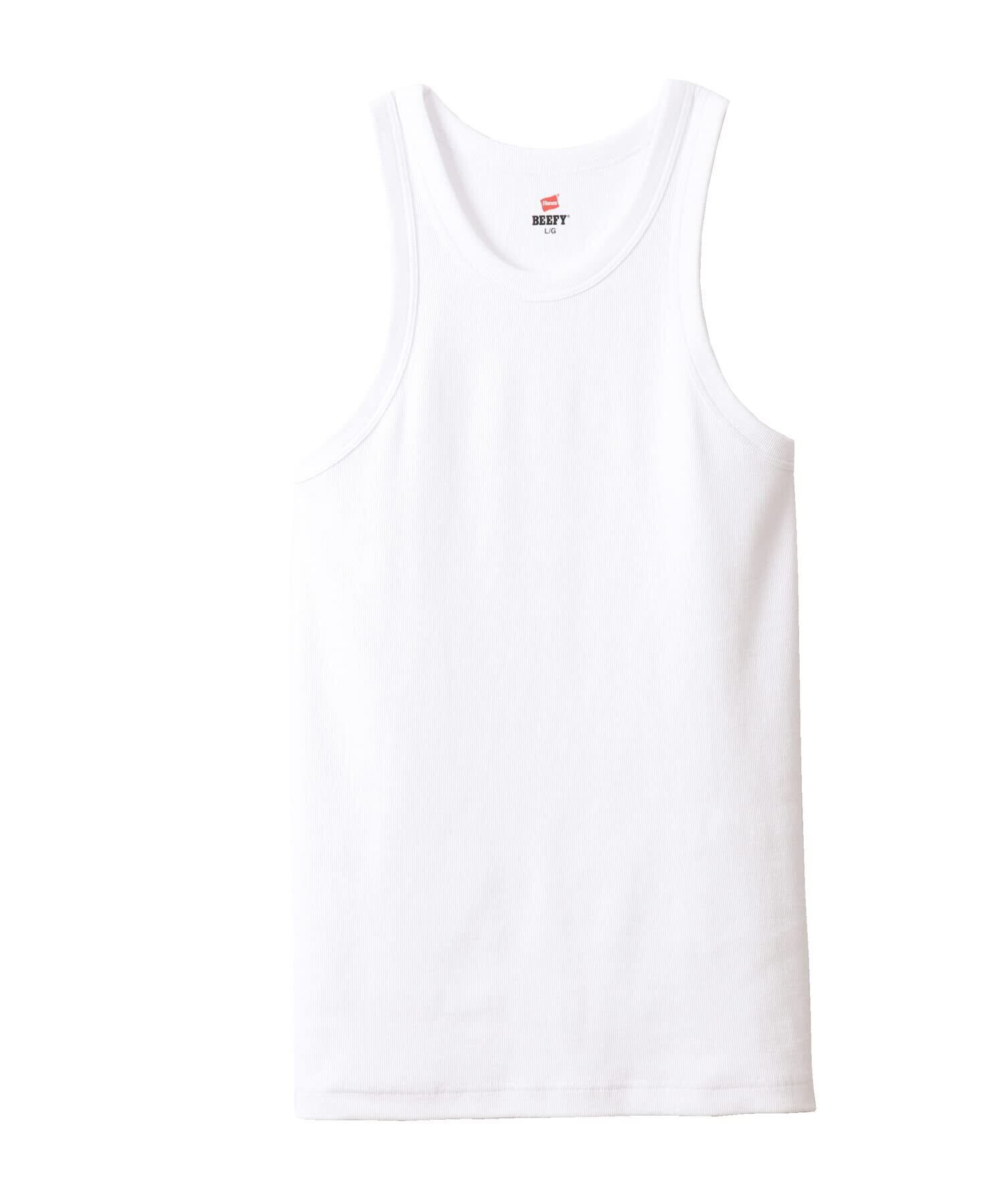 BEEFY(R)(ビーフィー)のコンセプトを体現するタフなリブタンクトップです。スパンデックス混のヘビーウェイト生地を使用し、ネックとアームホールはバインダー仕様。繰り返しの洗濯でも首周りが伸びにくく、型くずれしにくい耐久性が魅力。体にフィットするシルエットと、優れたストレッチ性による心地良いフィット感も特長です。