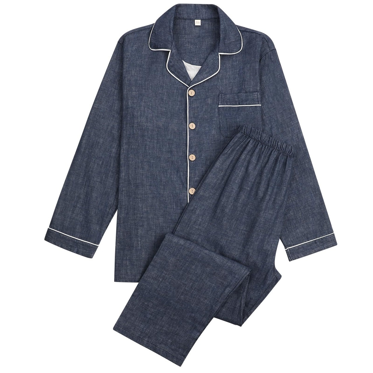 レコーン パジャマ メンズ 長袖 綿100% 二重ガーゼ 上下 セット ルームウェア 前開き ガーゼパジャマ 部屋着 肌に優しい 柔らか 吸汗通気 薄手 快適 おしゃれ 入院用 父の日 ギフト 春 夏 秋