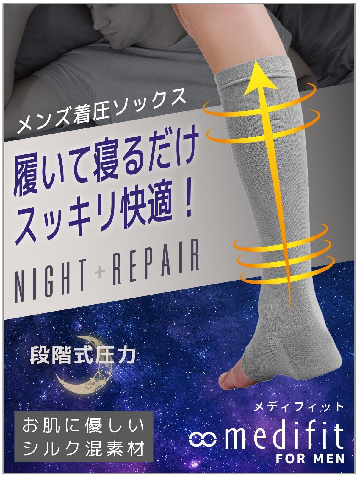 Maison Peony MEDIFIT 着圧ソックス おやすみ メンズ シルク混 夜用 就寝用 1足 フリーサイズ ひざ下 日本製