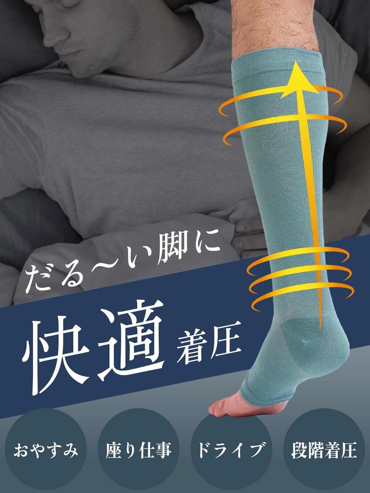 【高い伸縮性だからサイズ選びに悩まない】ひざ下・オープントゥタイプでつま先がないため、夜用にご着用いただけます。シルク混素材を採用しているため、寝る時だけでなく日中にも最適です。