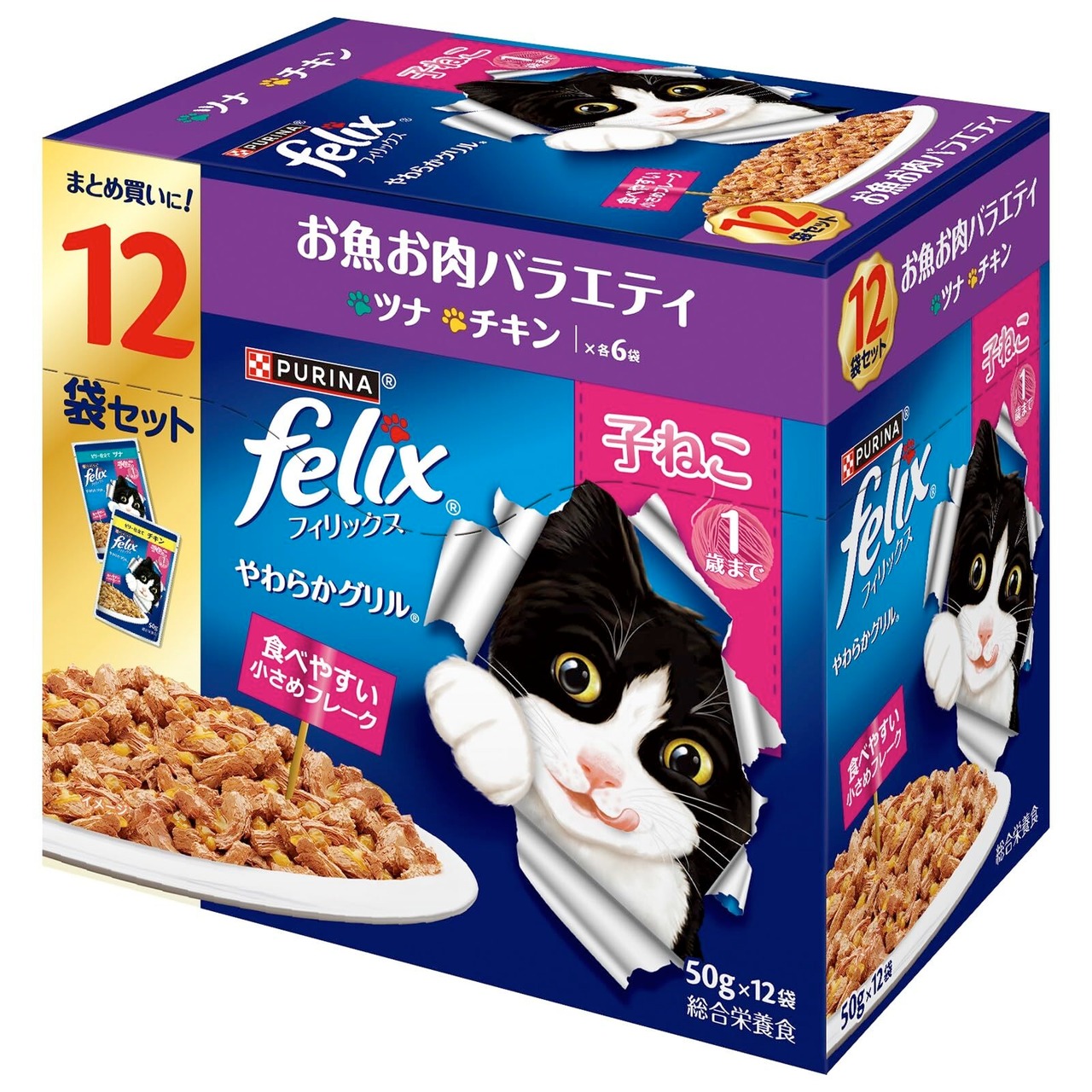 フィリックス パウチ やわらかグリル 子ねこ お魚お肉バラエティ 50gX12袋