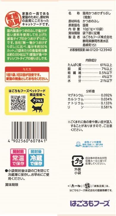 【在庫処分】はごろも 猫用おやつ 無一物 減塩 かつおけずりぶし1g10袋入×5個 (まとめ買い)