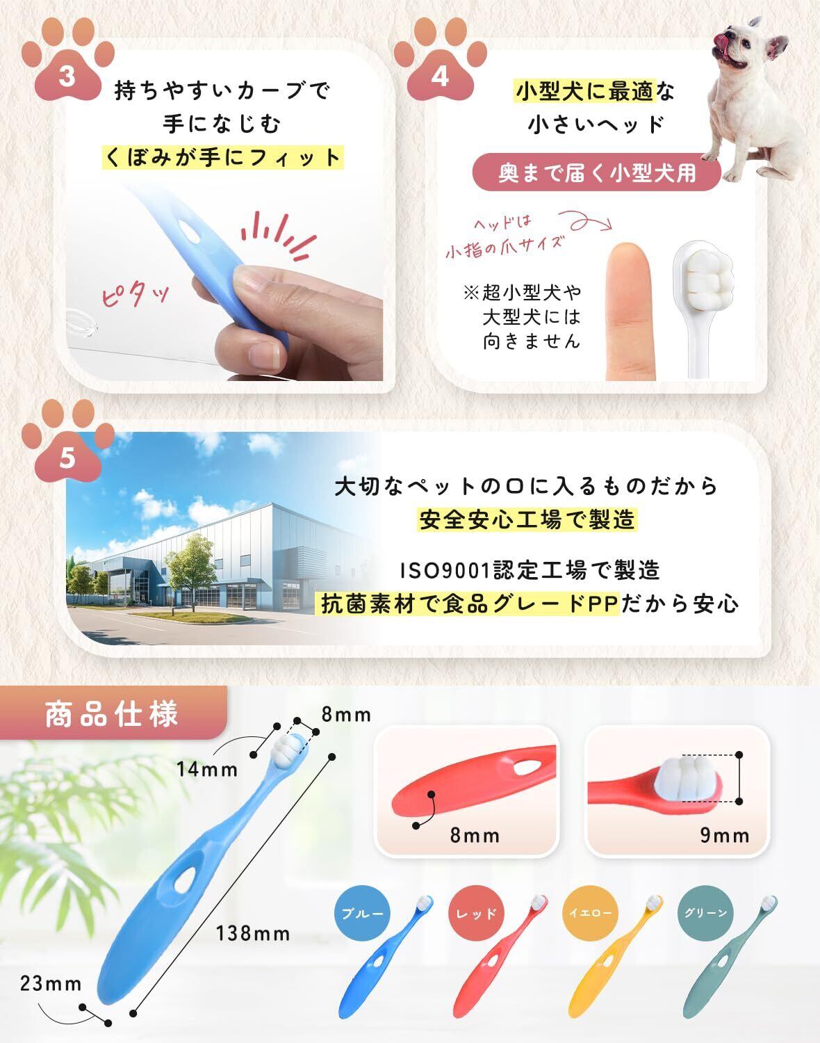 【犬の専門家推奨 x 10000本植毛が強力洗浄】 犬 歯ブラシ 『キレぴか歯ブラシ』 【柔らかく歯茎に優しい x 0.08㎜極細毛】小型犬用5kgから 4本セット 食品グレード 抗菌素材 (4)