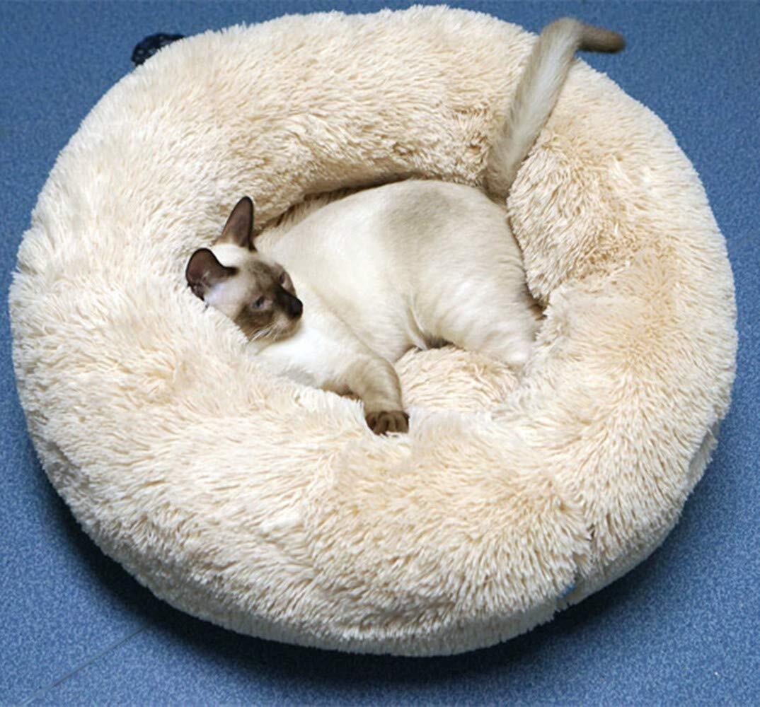 猫 犬 ベッド クッション グッズ - ラウンド型 もふもふ 丸型 OYANTEN ドーナツふわふわ もこもこ ぐっすり眠る 洗える キャット 通年 猫 小型犬用 ペット用品 (50cm ベージュ)