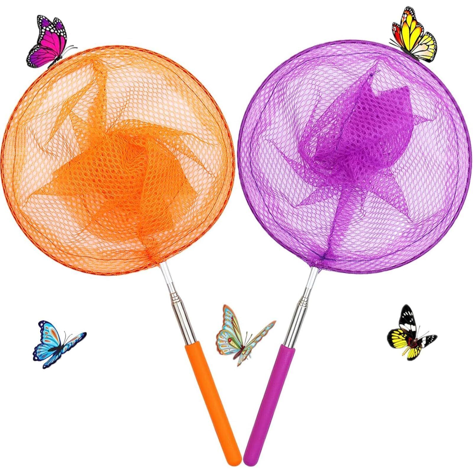 【特価商品】虫取り網 2色 2本入り 魚取り網 昆虫ネット 軽量 調節可能 5段伸縮 昆虫採集 水陸両用網 子供用虫取りアミ 屋外ツール トンボ 蝶 小魚の捕獲に適しています (オレンジ+パープル)