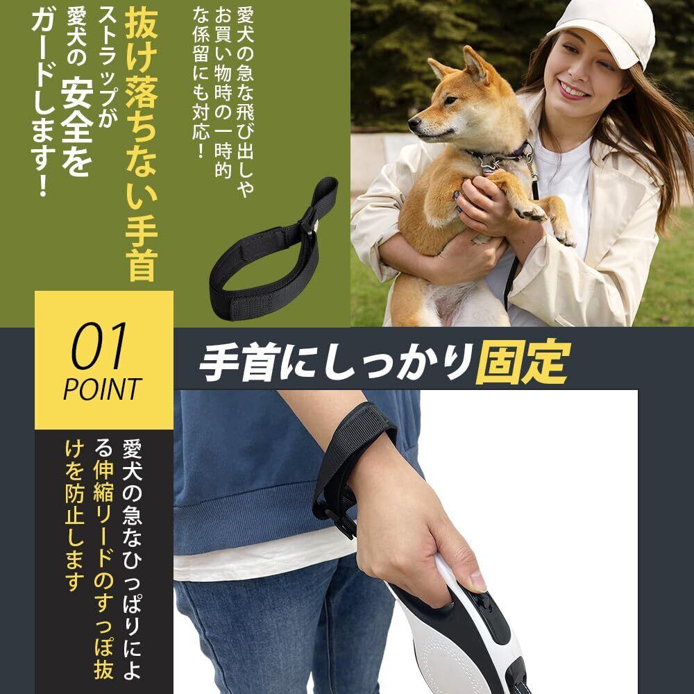 【ストラップ付き 】犬 リード 伸縮 中型犬 LED ライト付き 【光るリード】 長さ 5m 充電式 伸縮 犬用 リード 自動巻き ストラップ付き 光反射 夜散歩 小・中型犬用 dog leash cwse-003 (ブラック色ストラップ)