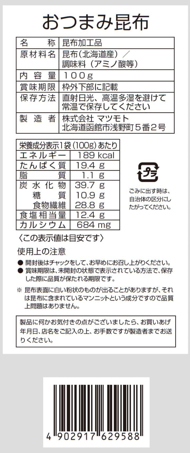 マツモト 徳用おつまみ昆布100g ダイエット/ヘルシー/食物繊維豊富