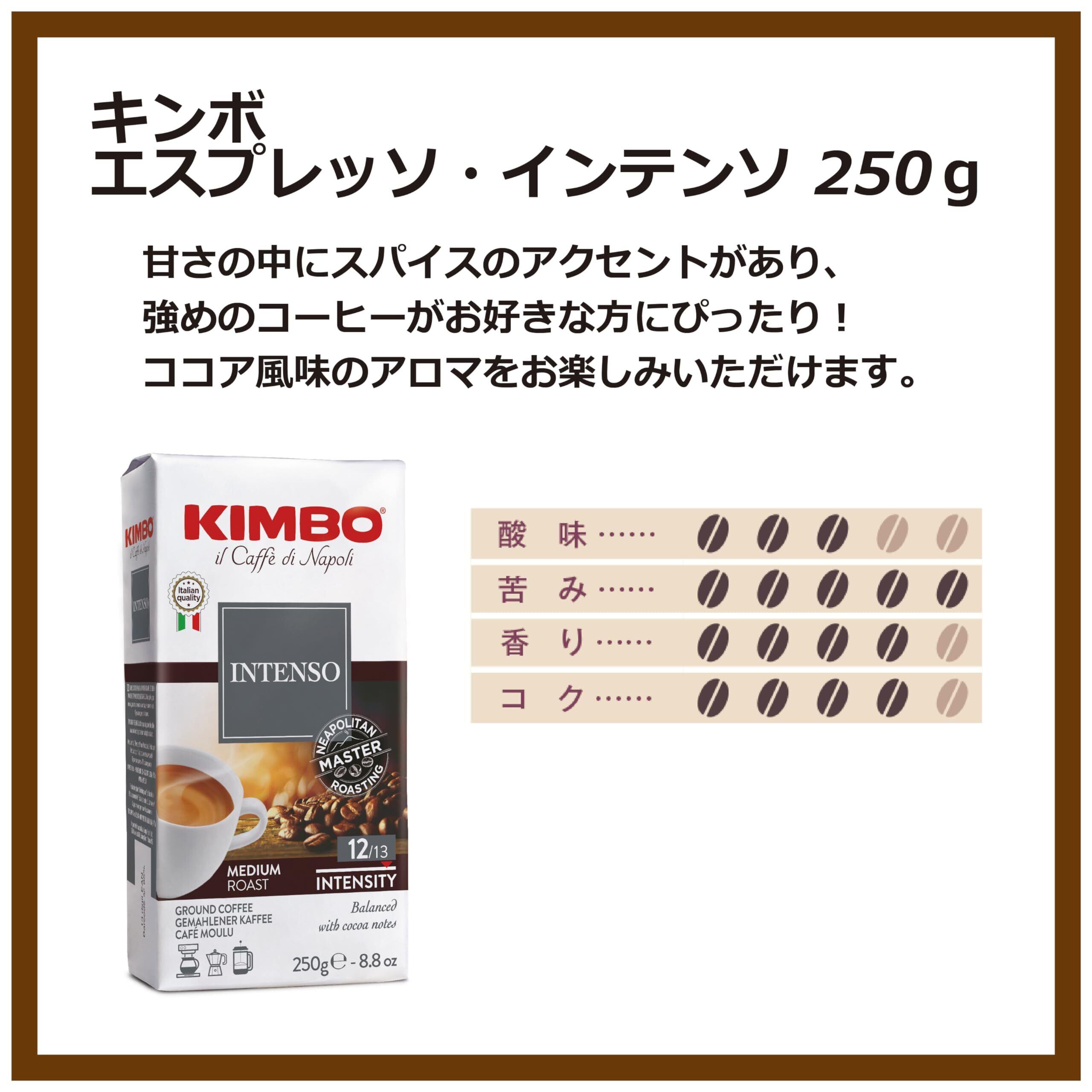 キンボ(KIMBO)コーヒー粉 エスプレッソ イタリア(ミディアムロースト アラビカ40% ロブスタ60%)インテンソ 250g(粉)