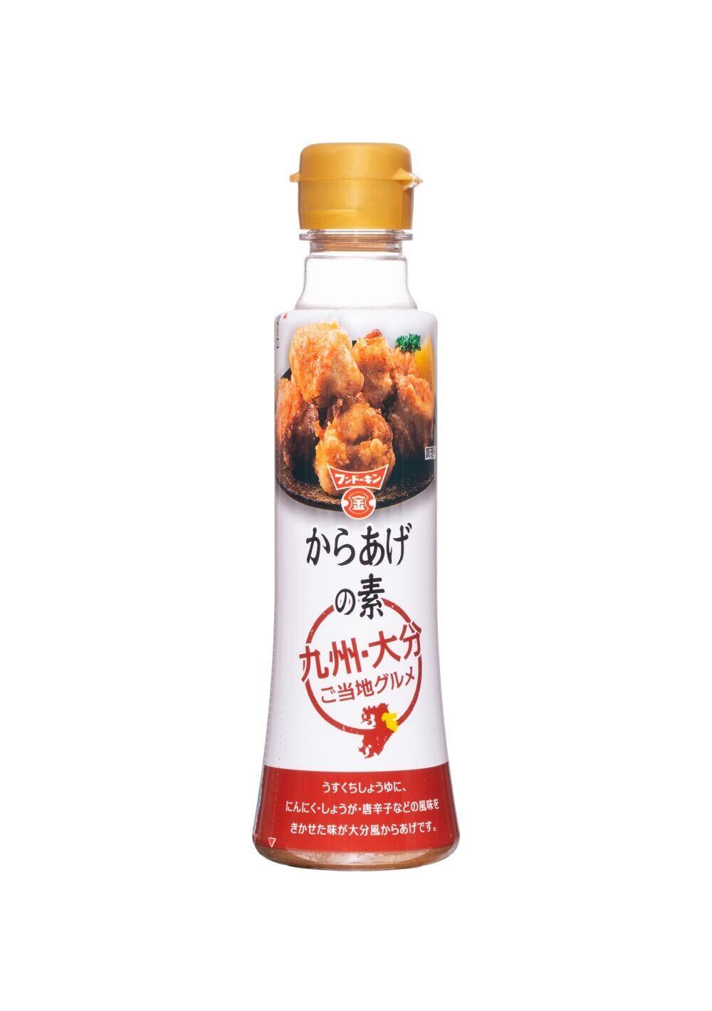 大分県 県北地方は"からあげの聖地"と呼ばれるほど人気があり、関東・関西にも店舗を構えるようになっています。"大分からあげ"の特長は"香辛料(にんにく・しょうが・唐辛子)"の風味をきかせたしょうゆダレです。本品(からあげの素)はフンドーキンの"うすくちしょうゆ"をベースに、にんにく・しょうが・唐辛子などの風味を効かせた、しょうゆだれに仕上げました。