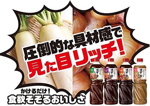 原材料:しょうゆ(大豆・小麦を含む)(国内製造)、大根、たまねぎ、ぶどう糖果糖液糖、りんご果汁、砂糖、りんご酢、醸造酢、食塩、しいたけエキス、動物性たん白加水分解物(豚肉を含む)、香辛料/アルコール、増粘剤(加工でん粉、キサンタン)、調味料(アミノ酸等)