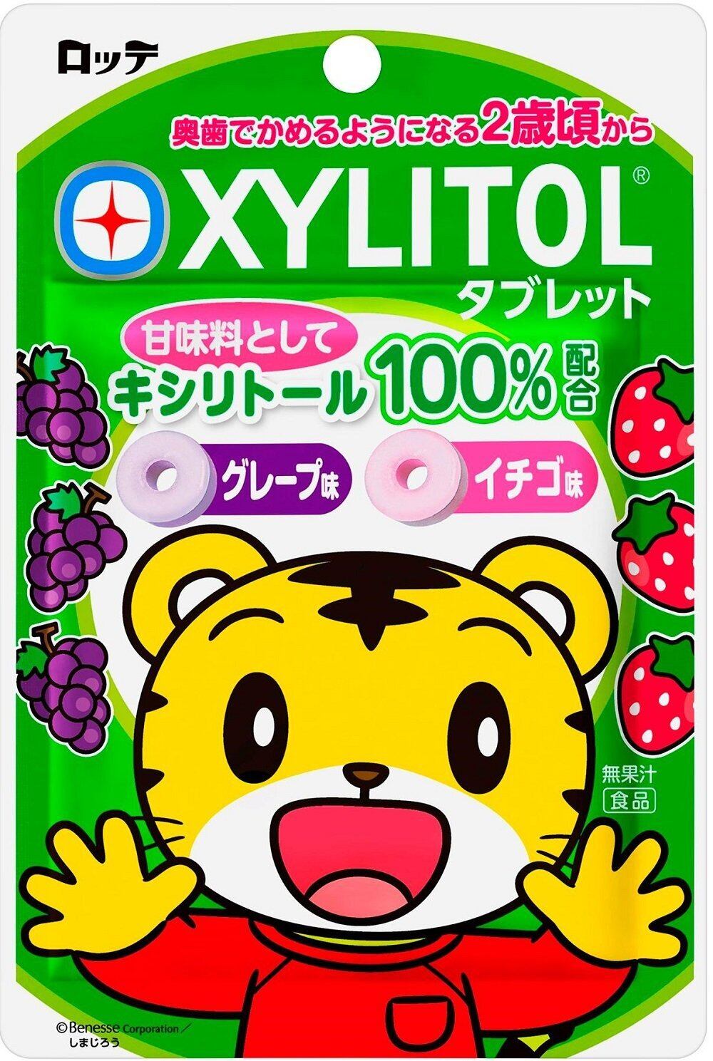 キシリトールが甘味料中100%配合されているタブレットで、子供に人気のグレープ味とイチゴ味の2種類の味が楽しめます。2種類の味を選びながら食べられますので、楽しみながらキシリトールを続けられます。子供に人気のしまじろうがデザインされたパウチタイプですので、いつでもどこへでも持ち歩いてキシリトールタブレットを食べることができます。子供が食べやすい穴あきタイプのタブレットです。
