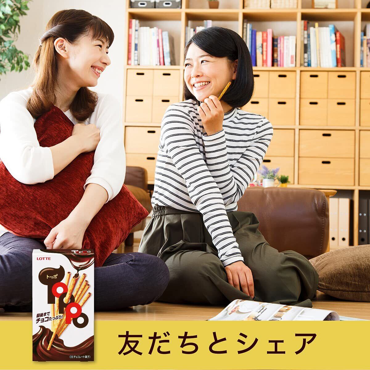「最後までチョコたっぷり!」のトッポ。サクサク食感のプレッツェルにマイルドなチョコレートが最後までたっぷりつまったトッポは、「やっぱこれだねー」となる定番のおいしさです。香ばしいプレッツェルとチョコレート感がしっかりと楽しめる品質になっています。手につかないチョコレート菓子なので、いつでもどこでも、満足感のあるおいしさが楽しめます。