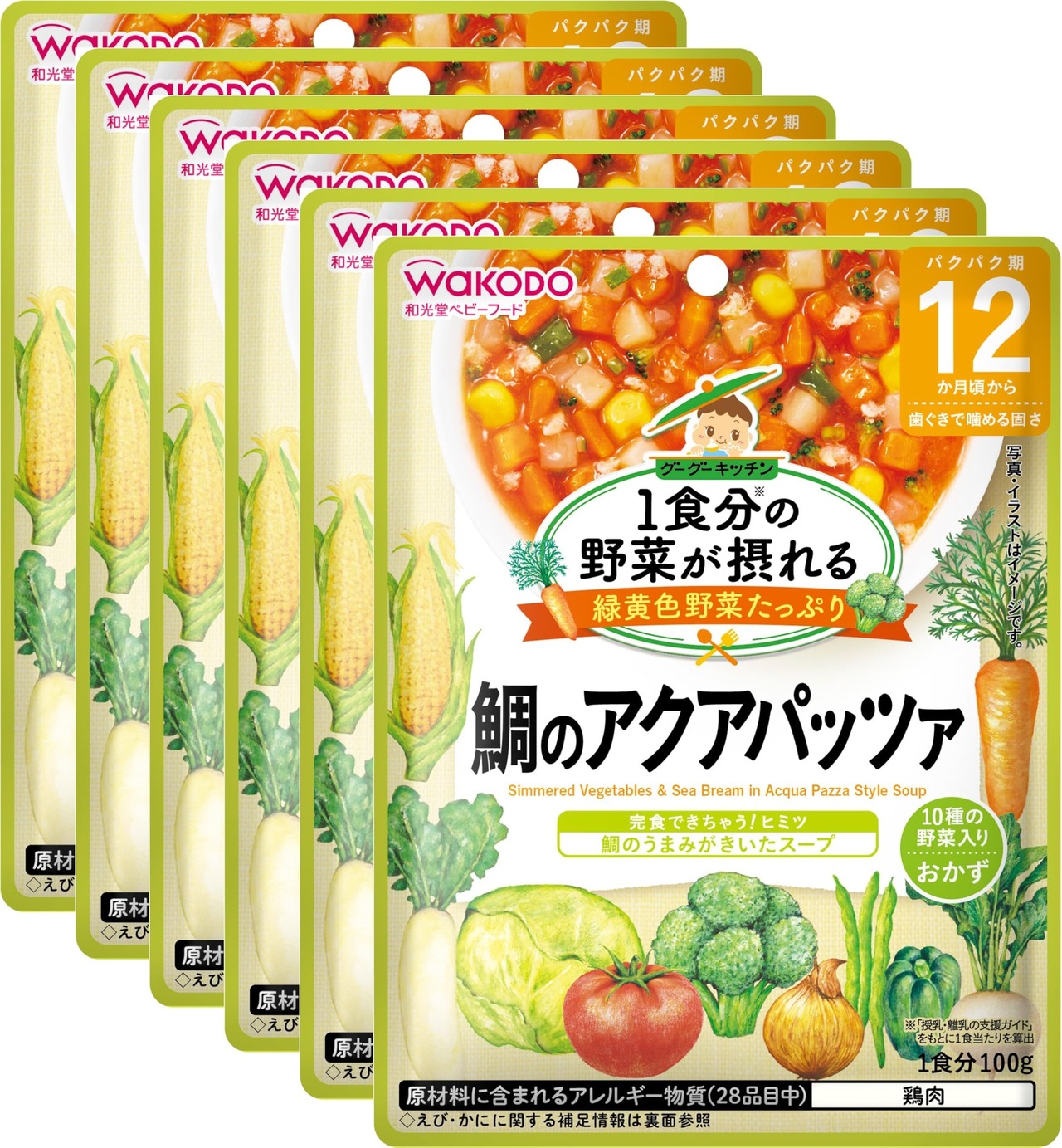 【和光堂】 1食分の野菜が摂れるグーグーキッチン 鯛のアクアパッツァ 100g×6個 12か月頃から 10種の野菜入りおかず