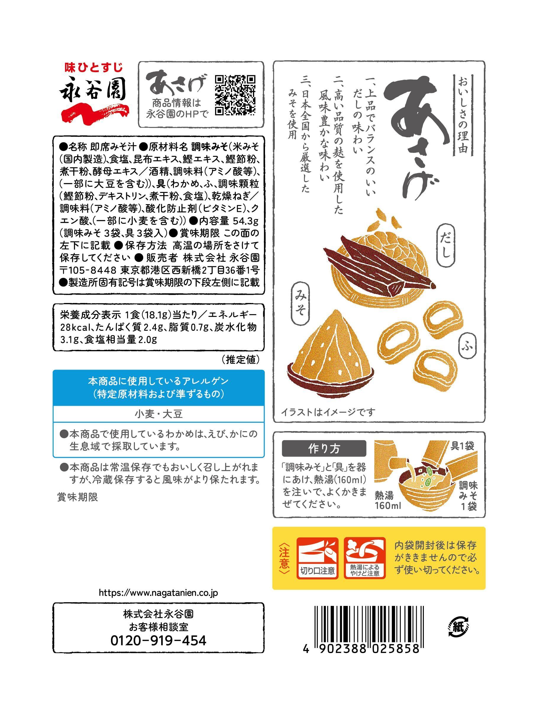 永谷園 生みそタイプみそ汁 あさげ 3食入×10個
