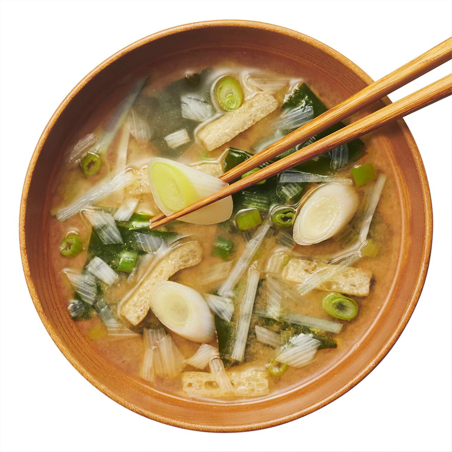 原材料:<調味みそ> 米みそ(国内製造)、豆みそ、砂糖、食塩、かつおエキス、発酵調味料、宗田かつお節粉末、かつお節粉末、昆布エキス、煮干し粉末/酒精、調味料(アミノ酸等)、(一部に大豆を含む) <具> 乾燥ねぎ、油あげ、わかめ/凝固剤、(一部に大豆を含む)