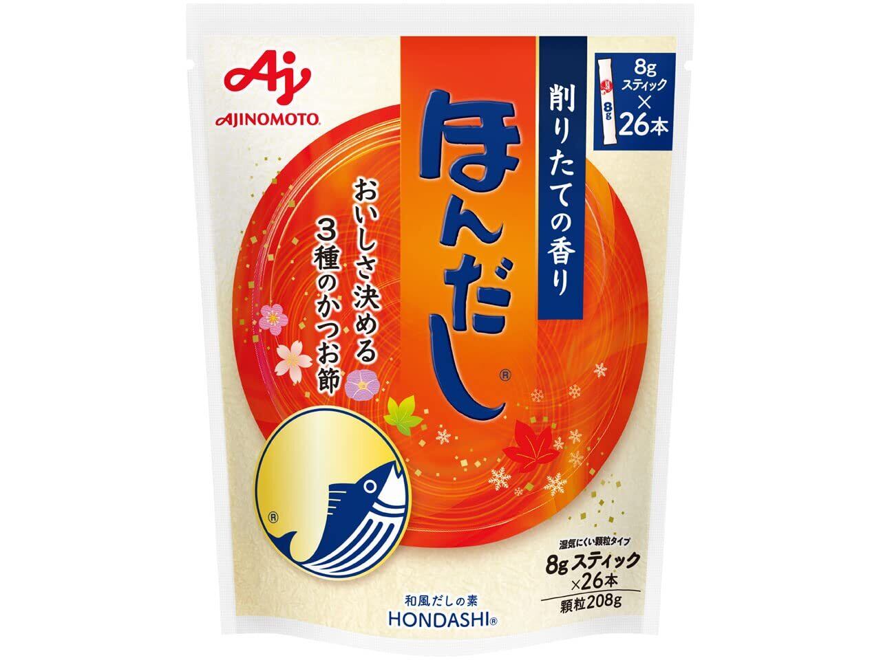 原材料:調味料(アミノ酸等)、食塩、砂糖類(砂糖、乳糖)、風味原料(かつおぶし粉末、かつおエキス)、酵母エキス、小麦たん白発酵調味料