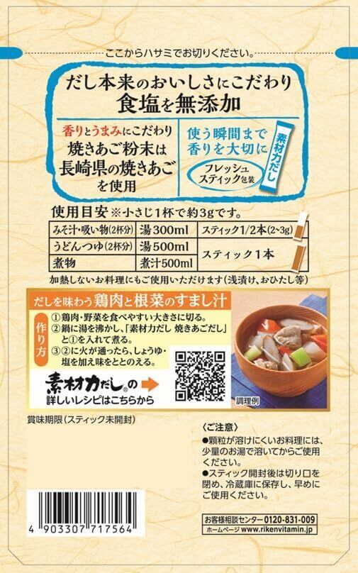 【特価商品】理研ビタミン 素材力だし 焼きあごだし 60g