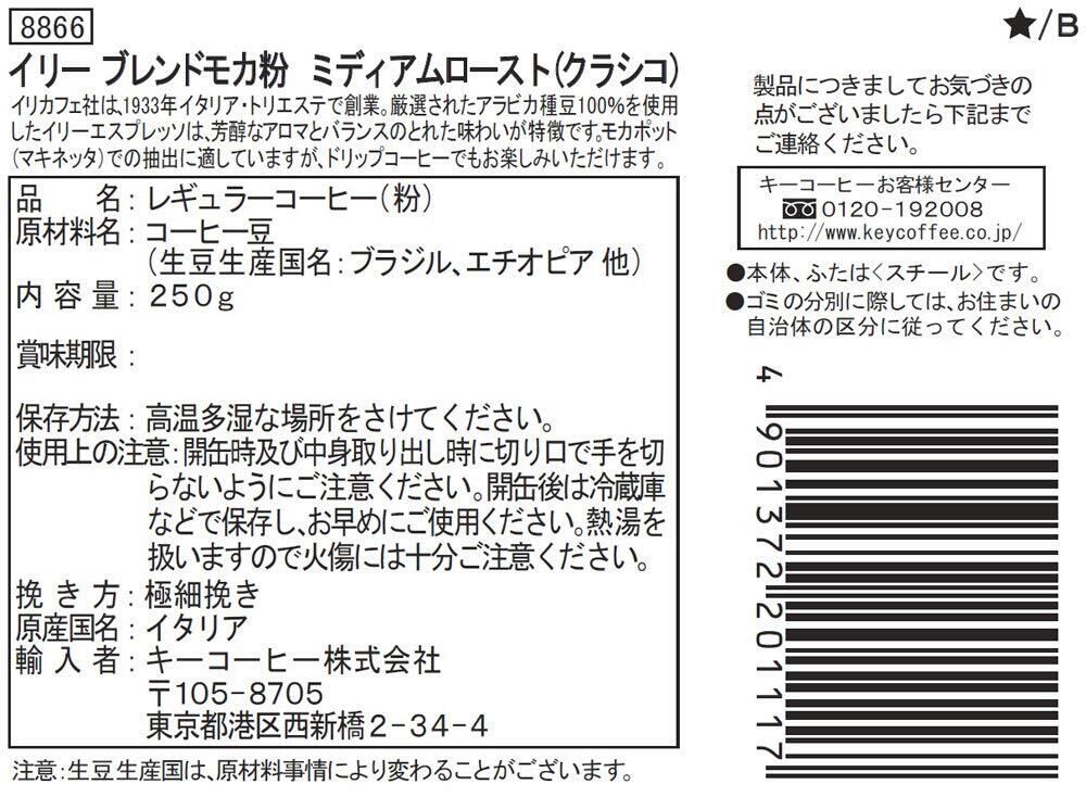 イリー ブレンド エスプレッソ 粉 モカ ミディアムロースト (クラシコ) 250g レギュラー(粉)