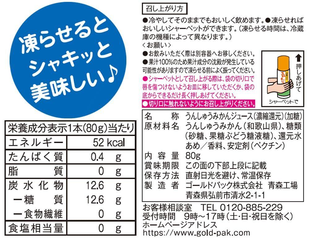 【人気商品】【シャーベット】 ゴールドパック 和歌山のみかんジュース 80g ×20本 【産地限定】