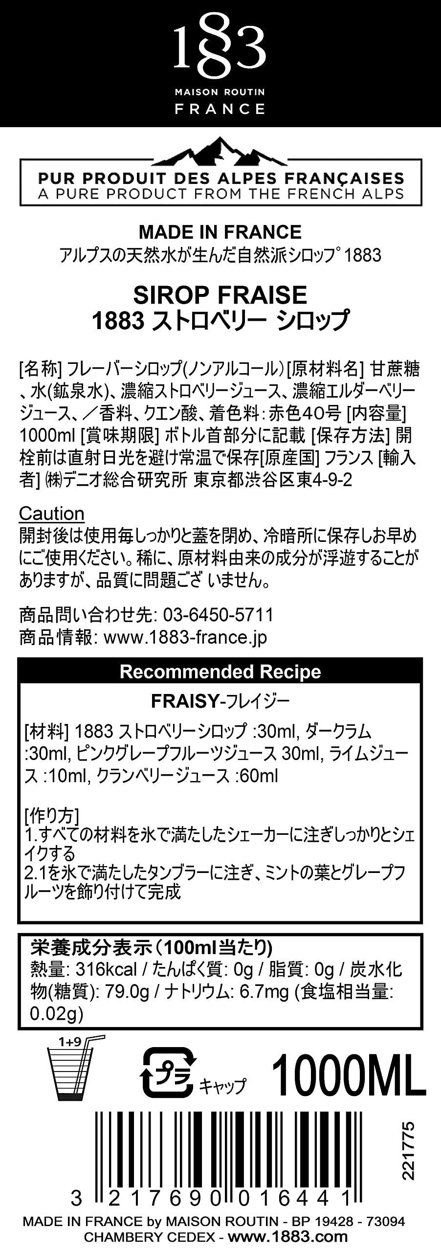 【特価商品】1883 Maison Routin (メゾン・ルータン) ストロベリー シロップ 1000ml 【割り材・調理】