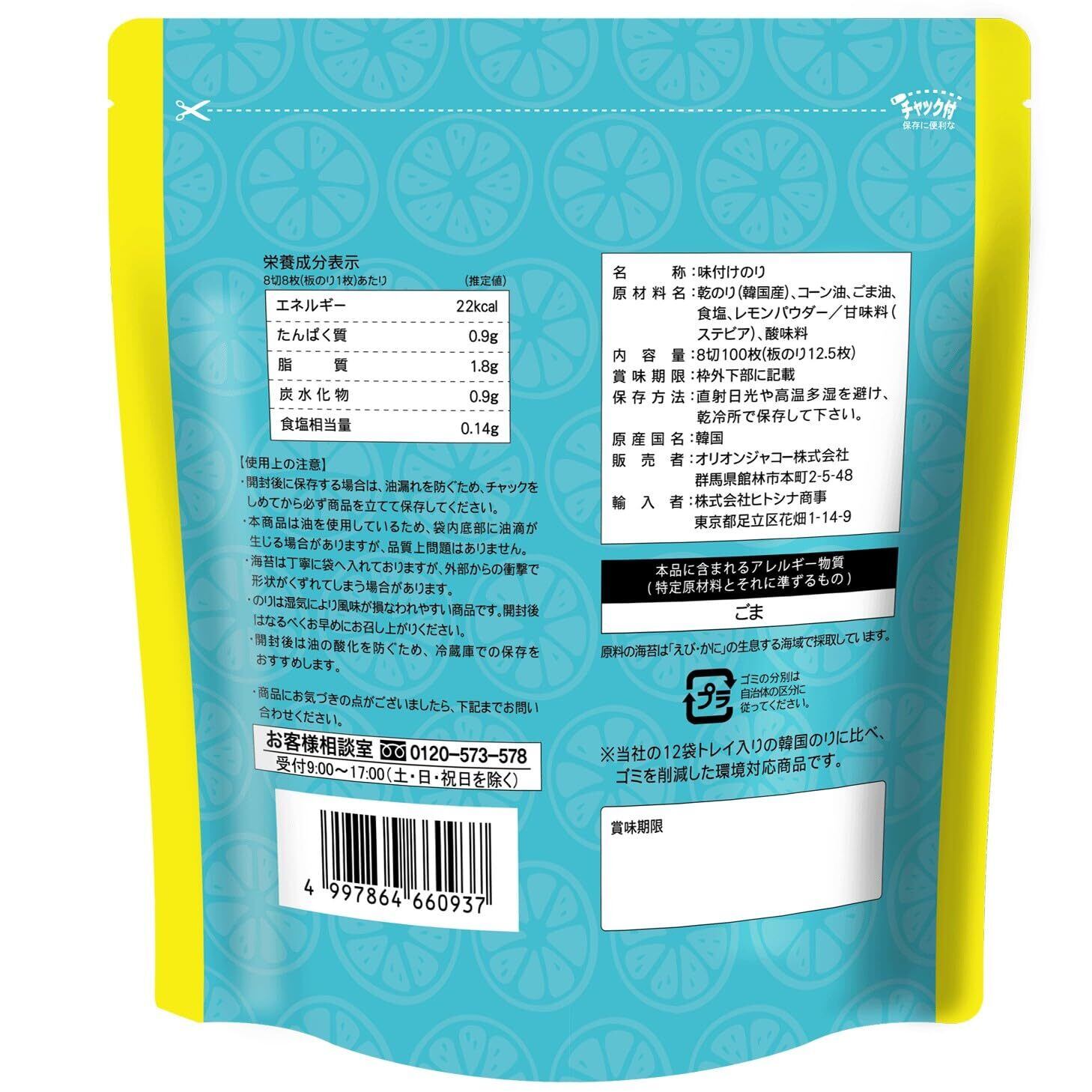 オリオンジャコー どっさり韓国のり塩レモン味 8切100枚