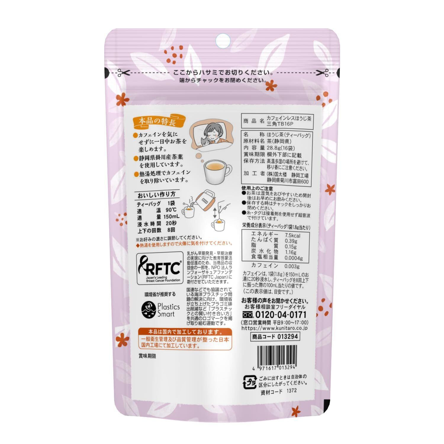 国太楼 カフェインレスほうじ茶 三角ティーバッグ 16P