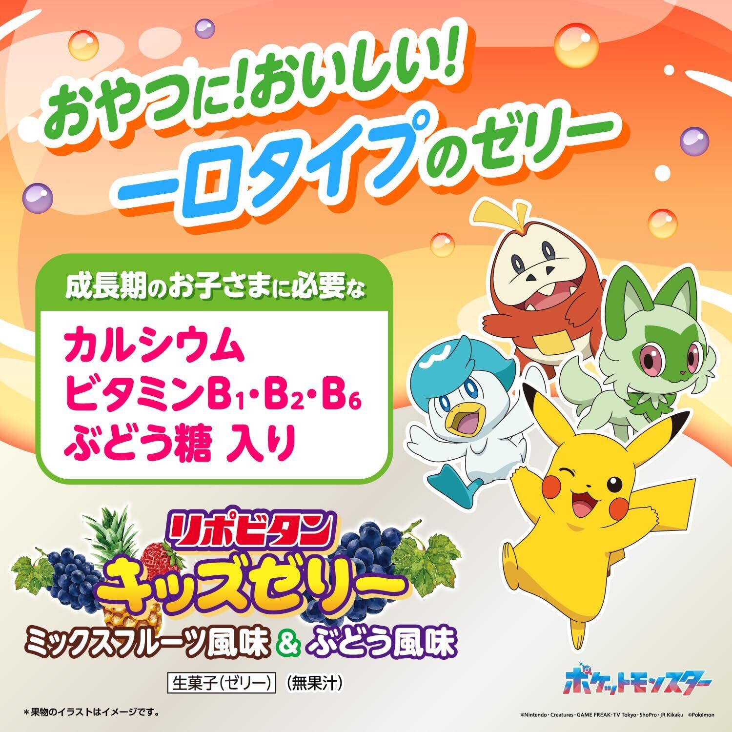 リポビタンキッズゼリー ひとくちタイプ ミックスフルーツ風味&ぶどう風味 160g(16g×10個)×8袋 現在実施している「幻のポケモンゲット大作戦」キャンペーンコードがついていない商品のお届けとなります