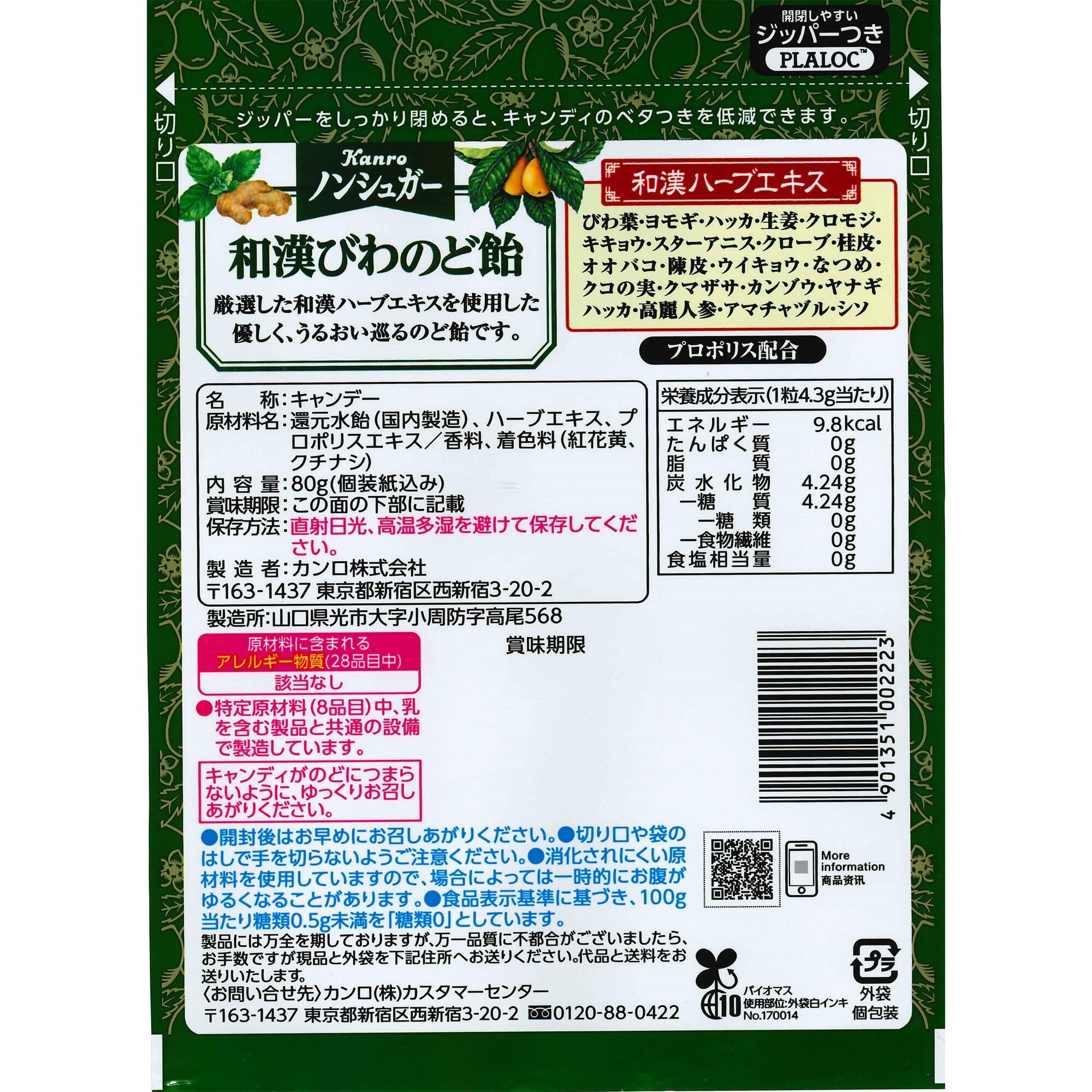 カンロ ノンシュガー和漢びわのど飴 80g×6個